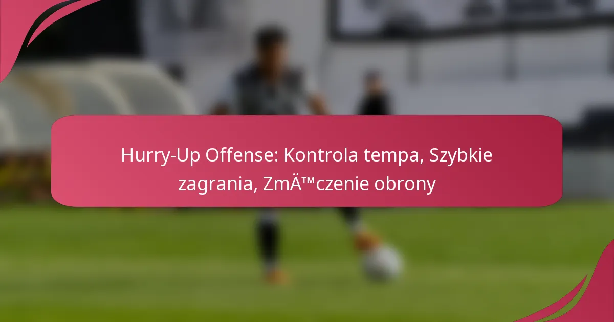 Ofensywa “hurry-up” koncentruje się na szybkim wykonaniu, często ograniczając czas między akcjami, aby utrzymać obronę w równowadze. Strategia ta może zakłócać zmiany w obronie i zmuszać przeciwników do szybkiej reakcji, co może prowadzić do błędów. Zespoły stosujące tę taktykę często wykorzystują podejście bez huddle, w którym zawodnicy pozostają na boisku bez zebrania, co umożliwia szybszą komunikację i wywoływanie akcji.