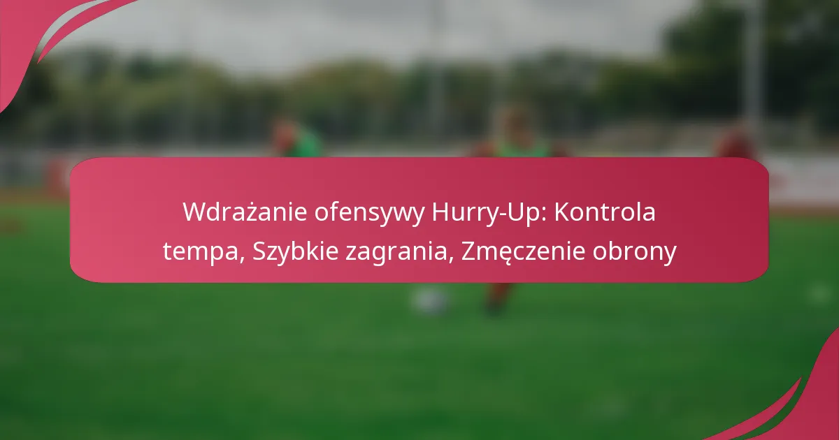 Ofensywa przyspieszona to dynamiczna strategia w futbolu, która podkreśla szybkie tempo gry, aby utrzymać obrony w niepewności. Minimalizując czas między zagrywkami, drużyny mogą wykorzystać słabości obrony i wywołać zmęczenie, co ostatecznie prowadzi do korzystnych okazji do zdobycia punktów. Skuteczna realizacja wymaga szybkiego podejmowania decyzji i efektywnej komunikacji, co pozwala ofensywie kontrolować tempo gry.